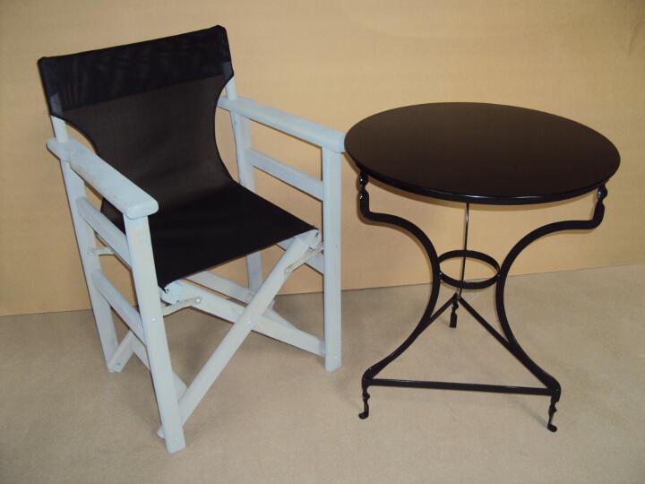 12. Καρέκλα Σκηνοθέτη 36.5€ [89x56x54] Ύφασμα PVC Διάτρητο, Tραπέζι 45€ (∅60) Σιδερένιο